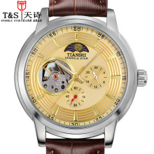 天诗全自动机械表镂空时尚潮流牛皮男表带男士腕表日月星辰男手表