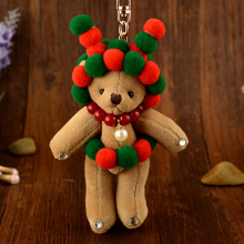 钥匙挂件女+韩国创意可爱毛绒小熊公仔个性包包挂饰汽车钥匙扣链