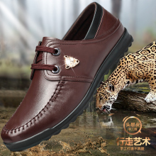 春季新款男鞋系带商务休闲皮鞋男真皮英伦韩版潮透气中年单鞋子男