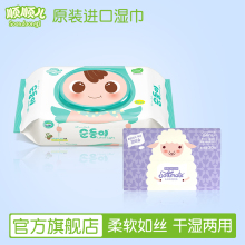 顺顺儿进口新生儿干湿两用巾婴儿纸巾宝宝手口专用干湿巾160片