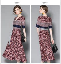 蔚家时尚2017夏季新款连衣裙碎花V领中袖优雅品质精致系带中长裙