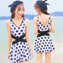 新款韩版时尚加大码连体裙式保守遮肚钢托小胸聚拢大胸温泉泳衣女