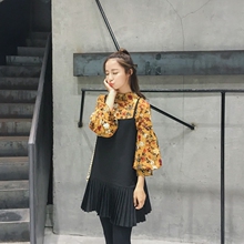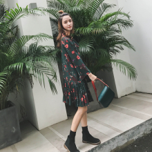 2017大码女连衣裙 韩版复古百褶衬衫连衣裙 宽松百搭女士连身裙子