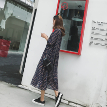 薇语大码女装2017早春新款小碎花连衣裙七分袖女春款雪纺裙中长款