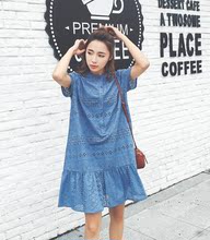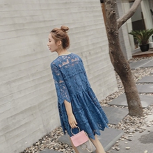 2017季新品大码女蕾丝九分袖连衣裙复古百搭打底裙子加肥加大