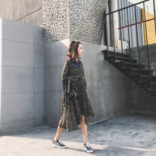 薇语大码2017春季新品衬衫式鱼尾连衣裙复古长袖宽松潮品胖MM