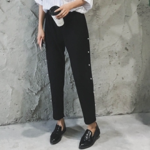 2017春新品大码女裤韩版针织松紧腰女式休闲长裤子珍珠裤子200
