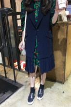 大码马夹2017女士春韩范显瘦中长款无袖西装领马甲韩国东大门外套