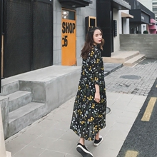 新款碎花连衣裙2017春装新款女装大码显瘦长款裙子修身大摆长裙