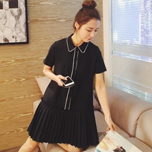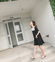 薇语大码女2017春夏新品半袖拼接连衣裙韩版宽松裙子黑色显瘦款