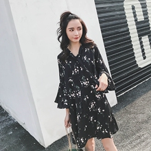 薇语大码 2017春韩版连衣裙复古显瘦黑色裙子宽松显瘦百搭潮