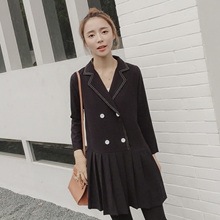 2017大码女装新品 春季复古西服领百褶上衣 加肥加大百搭胖MM