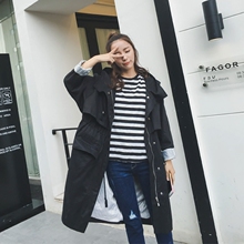 薇语大码女装韩国风衣中长款黑色连帽大外套宽松加肥加大百搭显瘦