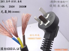 大功率纯铜插头线3芯1.5平方带三孔插头电线2米5米插头电源连接线