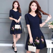 春秋冬季连衣裙刺绣印花打底裙30中年35大码40妇女装50岁妈妈裙子