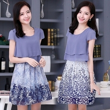 夏装印花雪纺连衣裙28大码35中年48妇女装妈妈打底裙短袖雪纺裙子