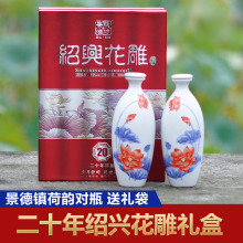 绍兴黄酒二十年陈绍兴花雕酒礼盒500mlx2 景德镇荷韵精瓷对瓶