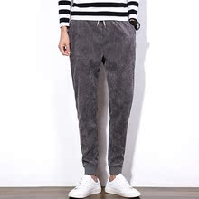 潮流灯芯绒休闲裤男士宽松束脚裤男青年大码长裤子春季新款哈伦裤