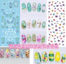 水印美甲贴纸指甲贴纸 指甲贴花指甲油胶贴纸 热卖圣诞节水墨花