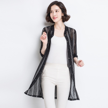 2017春夏针织衫女开衫中长款大码条纹薄防晒外套宽松披肩韩版冰麻