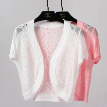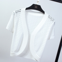 2017百搭针织衫短款小开衫女夏装薄坎肩外搭短袖镂空防晒披肩外套