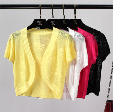 夏新短款蕾丝网纱女小开衫短袖针织披肩外套薄外搭防晒空调衫坎肩
