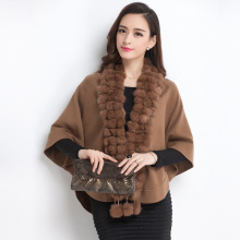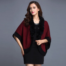 都丽雅秋装韩版蝙蝠袖针织衫开衫毛衣外套兔毛领斗篷大码女装披肩