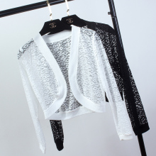 夏新短款蕾丝网纱女小开衫长袖针织披肩外套薄外搭防晒空调衫坎肩