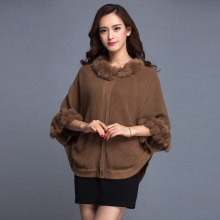 秋冬新品韩版蝙蝠袖针织衫开衫毛线衣外套兔毛领斗篷大码女装披肩