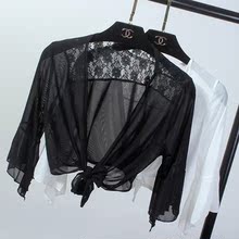 2016夏短款蕾丝网纱小开衫披肩外套薄外搭防晒衣女空调衫坎肩上衣