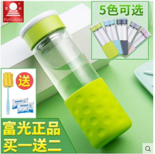 富光便携玻璃杯 男士500ml单层透明带盖滤网防漏320ml双层女士杯