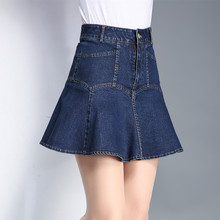 牛仔半身裙2017春夏新品韩版包臀高腰蓬蓬A字裙防走光鱼尾短裙子