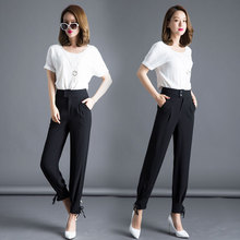 2017夏季哈伦裤女九分裤韩版高腰阔腿裤修身显瘦休闲裤小脚灯笼裤