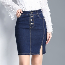 牛仔半身裙春季2017新款韩版紧身中长款包臀裙高腰显瘦开叉一步裙