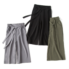 欧洲站OL风黑色百搭真丝阔腿裤女 桑蚕丝松紧腰七分裤休闲裤