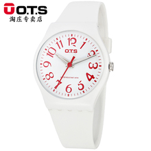 ots白色电子表女中学生手表夜光韩版时尚防水跑步运动手表男表潮