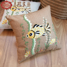 锦皓十字绣 客厅卧室车枕 精准印花3d丝带绣 抱枕靠垫 鱼戏水
