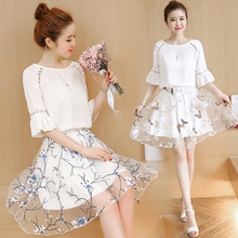 学院风2017新款潮时尚网纱套装裙女中学生百搭衬衫半身裙两件套夏