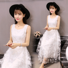 少女学院风韩版气质无袖连衣裙夏季2017新款女学生甜美收腰蕾丝裙