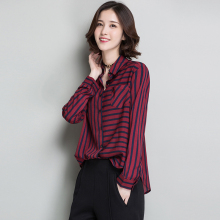 默绣2017春装新款韩版休闲宽松百搭竖条纹衬衣百搭雪纺衫上衣女
