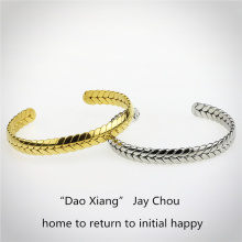 日系原创 纯色简单复古稻香金麦穗钛钢男女情侣开口手环 稻穗手镯