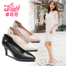 卓诗尼单鞋女春秋2017新款细跟尖头工作鞋裸色高跟鞋浅口通勤女鞋