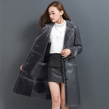 鑫纳多2016冬季新款海宁皮草外套女 羊皮毛一体中长款大衣两面穿