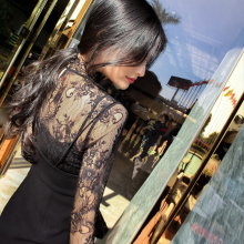 紧身宫廷复古黑色蕾丝裹胸吊带性感大露背透视假两件套连衣裙春秋