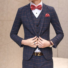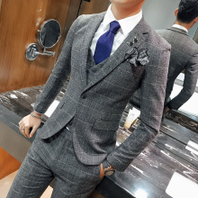 格子西服套装男士新郎结婚礼服修身伴郎服韩版休闲西装三件套英伦