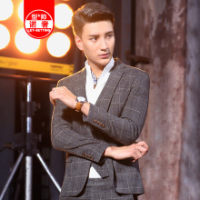立领休闲西服男 韩版修身青年中山装 毛呢小西装2017春秋装外套潮
