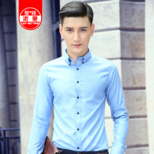 韩版修身商务休闲衬衫 牛津纺纯色免烫衬衣春秋男装英伦潮流