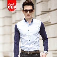 纯棉韩版修身休闲衬衫 男纯棉拼接英伦长袖衬衣 寸衫2016秋季潮流