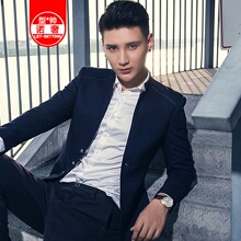 韩版修身立领中山装 免烫休闲西装春秋季青年外套 小西服英伦潮