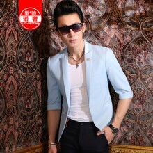 中袖休闲薄款西服 春夏季短袖小西装 韩版修身七分袖单西男装潮